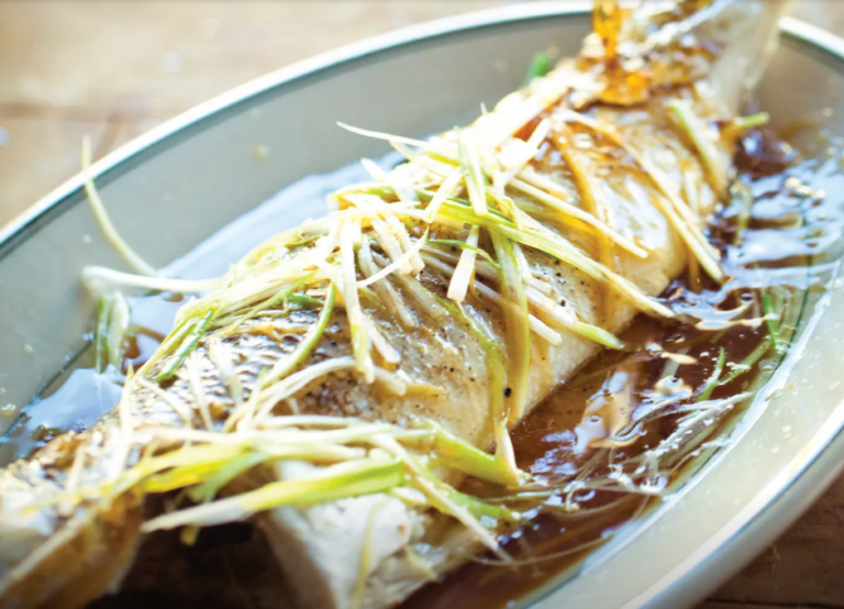 Lay the seasoned fish on the provided steam rack within the Whynter oven. This ensures even heat distribution during the cooking process. Drizzle the prepared marinade over the fish, ensuring it is evenly coated. Sprinkle the remaining ginger slices and scallions on top to enhance the flavor profile.
