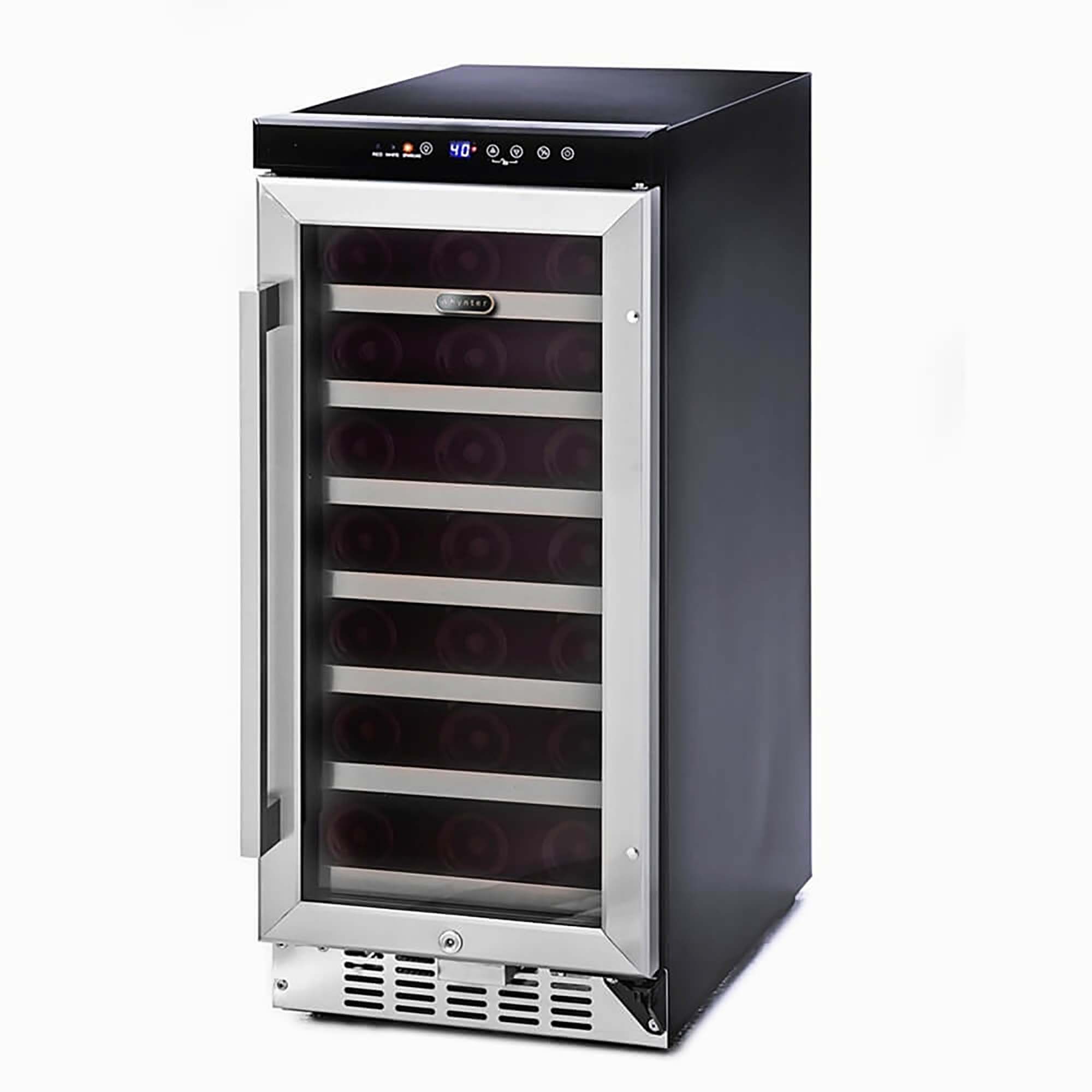 You can store up to 33 standard 750ml wine bottles in this single-zone wine storage system, with 5 bottles fitting on all the shelves except the bottom, which fits three. Yes, that’s right: there are seven removable shelves you can move around for your convenience. But don’t worry: even with all that capacity, your BWR-33SD is still thoughtfully designed when it comes to space. The slim 15” width is perfect for under-counter installation, though you can also use this unit as a freestanding appliance if desired.