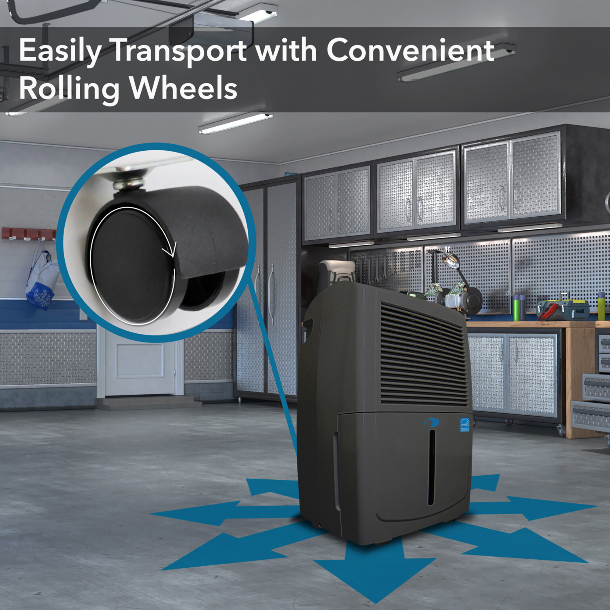● 50 pint (70 Pint 2012 DOE Standard) capacity dehumidifier