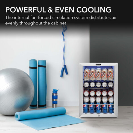 Unlike many budget beverage refrigerators, the Whynter 90 Can Stainless Steel Beverage Refrigerator utilizes premium features and design to provide a sleek showcase that will be centerpiece of any space. With its powerful compressor and internal air-cooled system, this beverage refrigerator creates an evenly-cooled space ensuring consistent temperatures throughout the beverage refrigerator.
