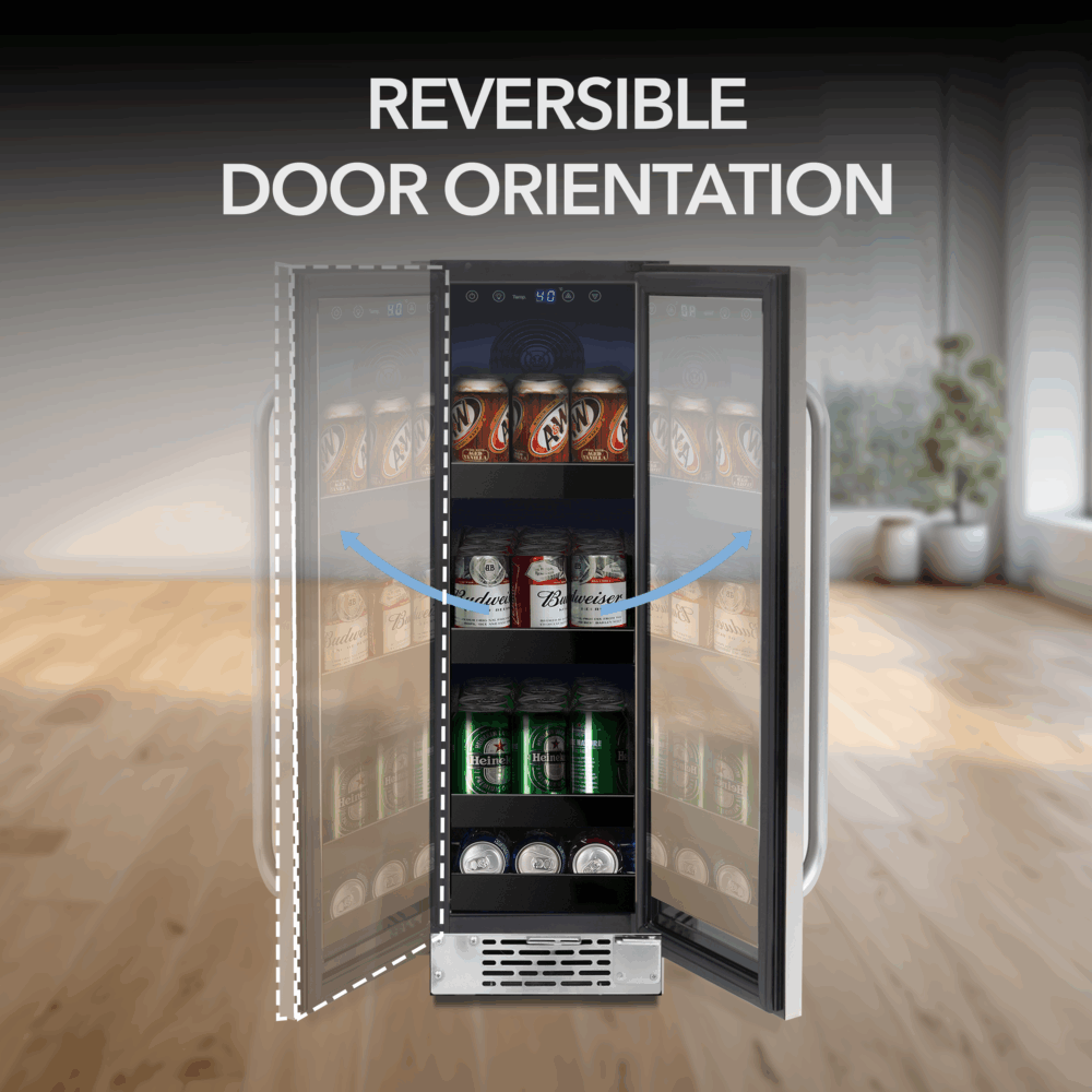 Capacity is based on standard 12 oz cans. Storing larger bottles may reduce the total number of beverages that fit.