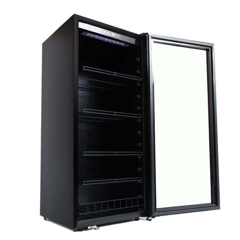 This Whynter single zone wine freestanding storage system can hold up to 124 standard 750ml wine bottles, an perfect storage and display unit for an expanding collection. Equipped with a strong fan-circulated cooling system and LED lighting the unit includes features to enhance your experience each time you reach for a bottle.