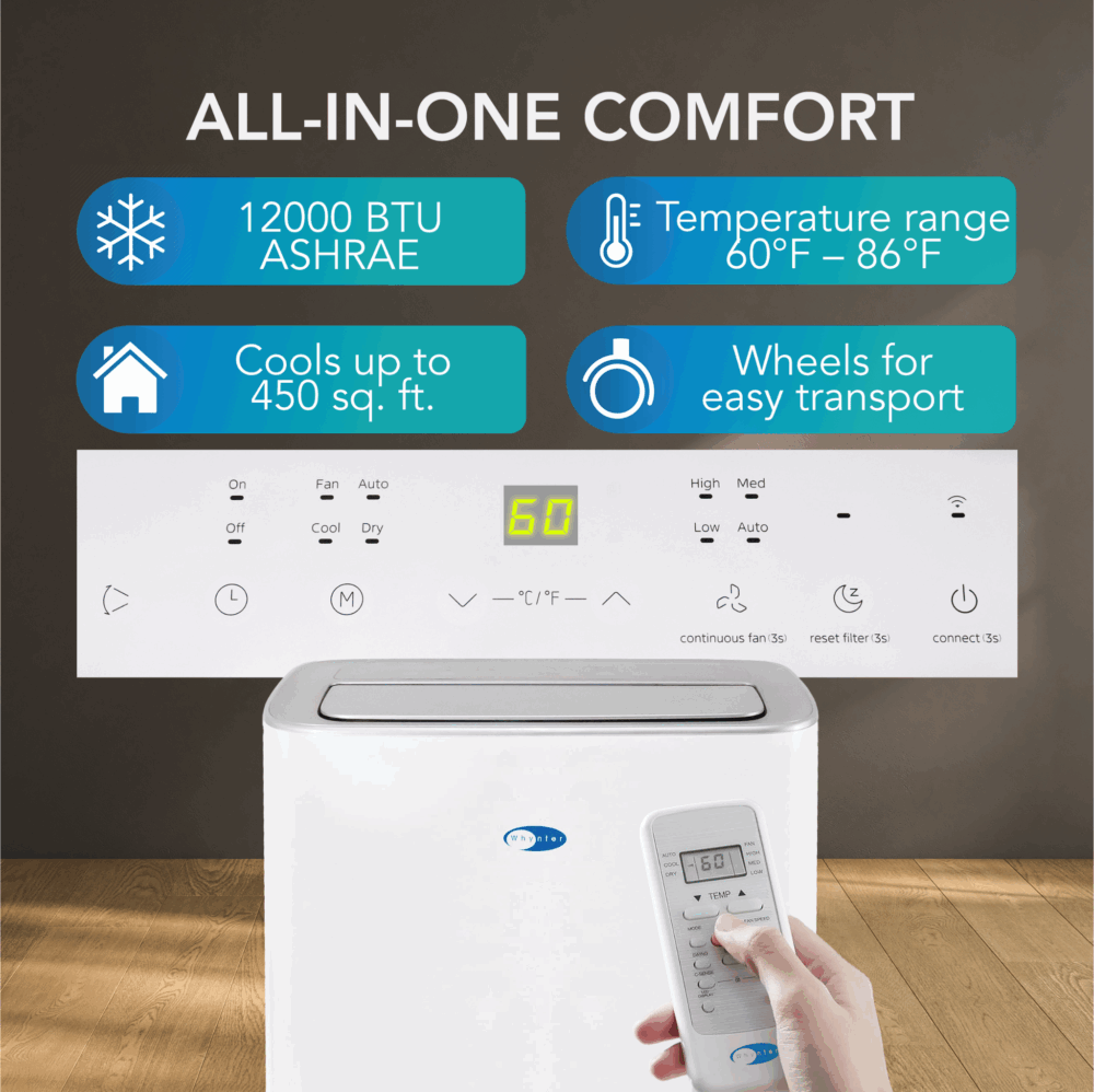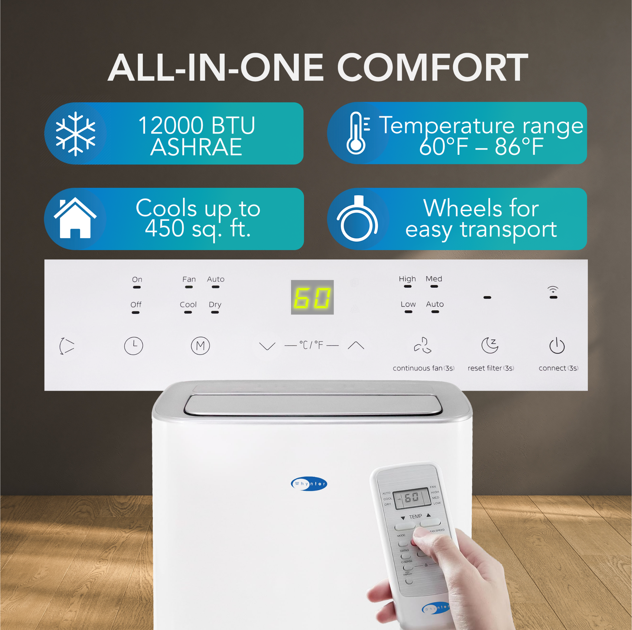 Enhance your home’s climate control with the Whynter ARC-1050XP MultiCool Smart Control Portable Air Conditioner. This advanced unit combines cooling, dehumidifying, and fan functions, efficiently cooling spaces up to 500 sq ft. With WiFi-enabled smart control, adjust settings remotely for unparalleled convenience. Its sleek white design blends seamlessly with any decor, delivering powerful cooling with minimal noise. Trust Whynter for cutting-edge technology and elegant design to keep your environment comfortably cool.