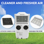 A portable air conditioner is a self-contained, freestanding unit designed to cool individual rooms. It includes wheels for easy movement, an exhaust hose, and a window kit to vent hot air outside. Some models also include a heat function using reverse air conditioning, allowing you to warm a room in cooler weather. Ideal for homes, offices, dorms, server rooms, and more.