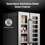 Dual-Zone 60-Can&20-Bottle Capacity Precise Digital Touch Control UV-Protective Glass Door Quiet Operation Fingerprint-Resistant Steel Door Adjustable Wooden & Glass Shelves Temperature Memory Function