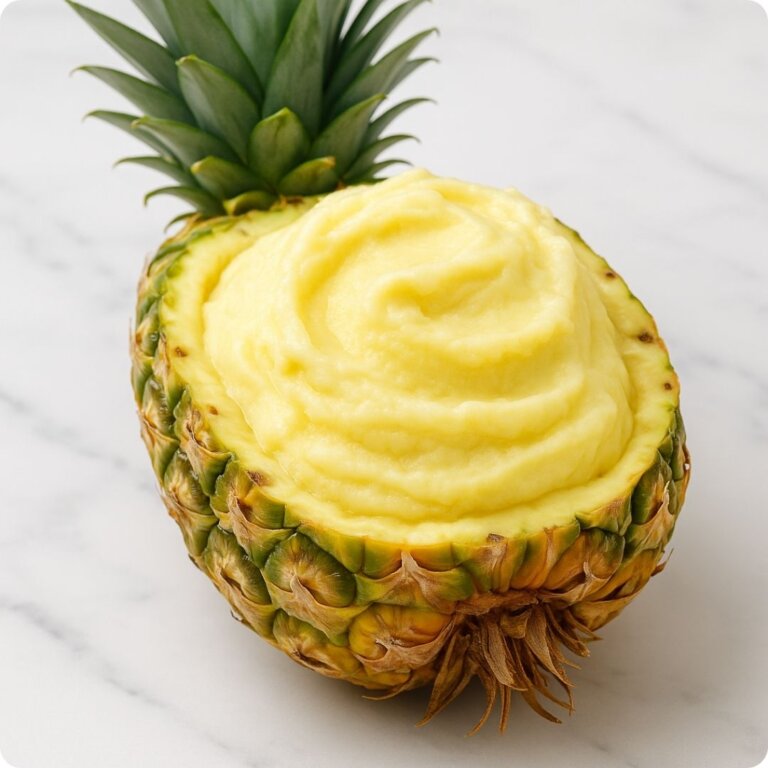 Bright, frothy, and bursting with tropical flavor, this pineapple sorbet is a refreshing escape to island sunshine. Made with ripe Hawaiian pineapple or a convenient can from the pantry and a touch of citrus, it’s the perfect palate cleanser or light dessert for warm days.