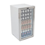 The stainless steel trimmed glass door and soft LED lighting allow you to see view the contents while maintaining internal temperatures and increasing energy efficiency. The Whynter 127 Can Stainless Steel Beverage Refrigerator is equipped with a lock to keep your beverages safe and secure. The door swing direction is also reversible for customization to your specific requirements.