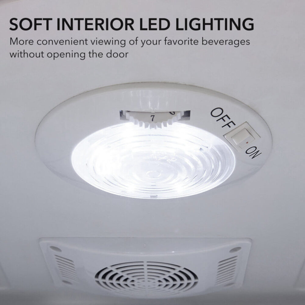 Capacity is based on standard 12 oz cans. Storing larger bottles may reduce the total number of beverages that fit.