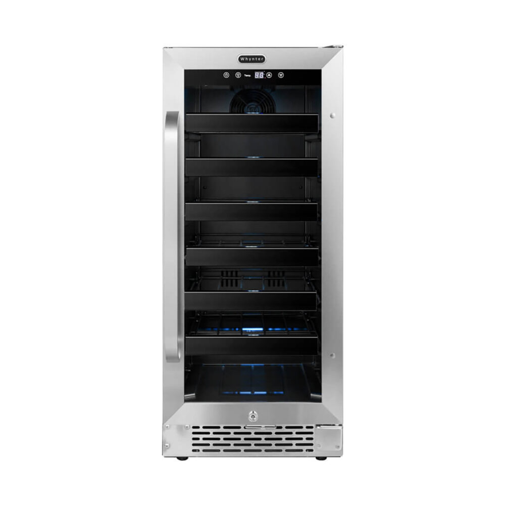 Our Whynter Built-In Under-Counter Stainless Steel Wine Refrigerator offers premium quality and innovative design ideal for your wine collecting needs. Whether for the enthusiast or the connoisseur, this single zone compressor wine refrigerator provides premium and advanced wine storage functionality. The Whynter BWR-308SB can hold up to 33 standard 750ml wine bottles.