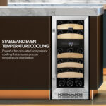 You can store up to 28 standard 750ml wine bottles in this dual-temperature wine refrigerator, with 10 bottles in the upper zone and 18 down below. A sleek black cabinet with a stainless-steel trimmed glass door and a luxurious curved handlebar make this BWR-281DZ a standout appliance in any space. With the installation options, you can have your 28-bottle wine fridge unit freestanding or under-the-counter.