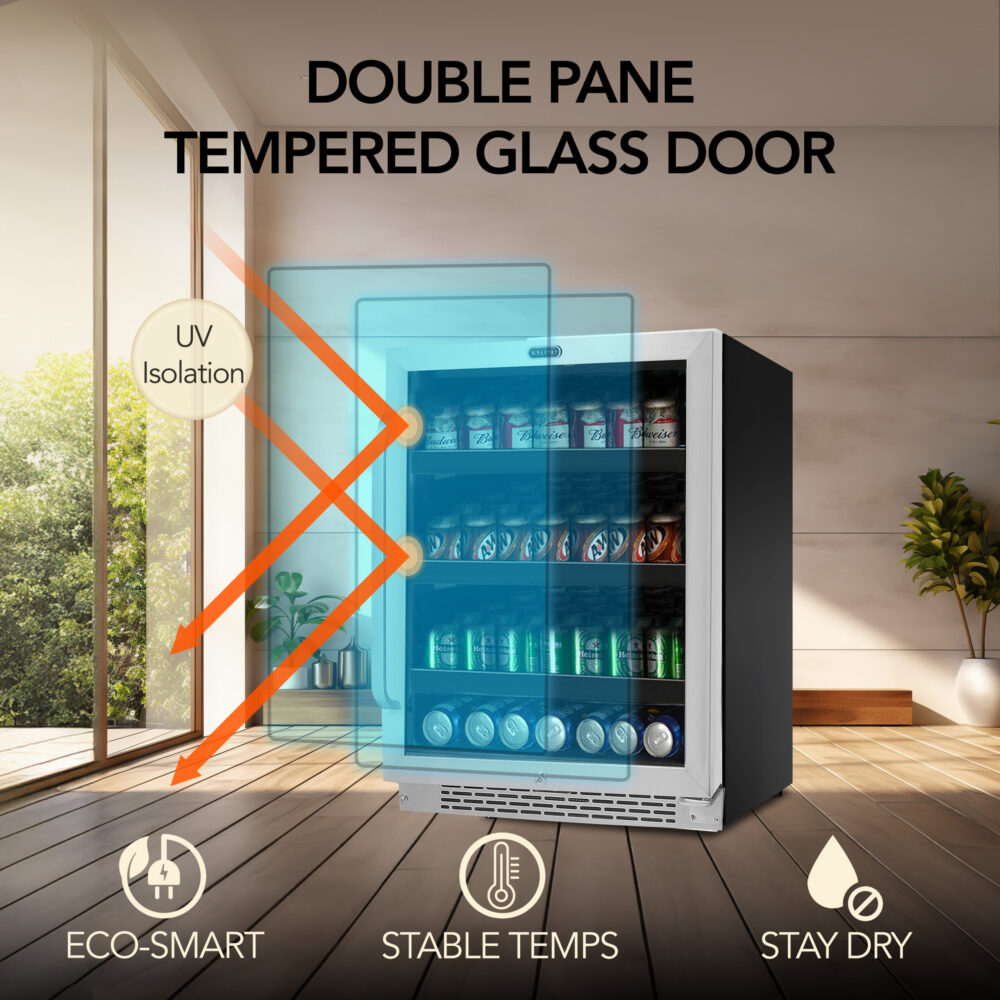 ● Double-pane glass doors offer superior UV isolation and energy efficiency