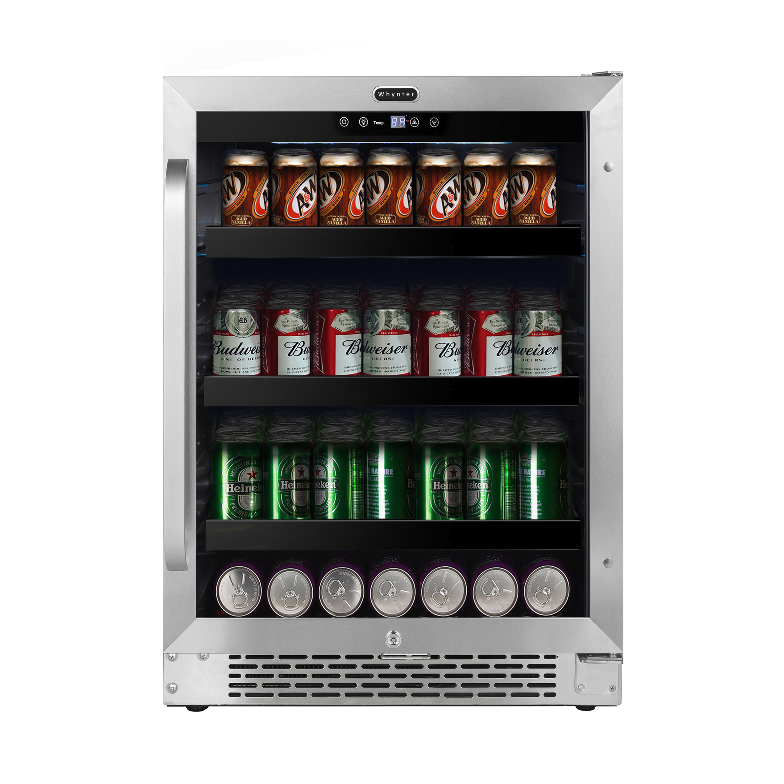 Whynter BBR-148SB 24″ Built-In 182 Can Undercounter Stainless Steel Beverage Refrigerator cooler with Reversible Door, Digital Control, Lock and Carbon Filter