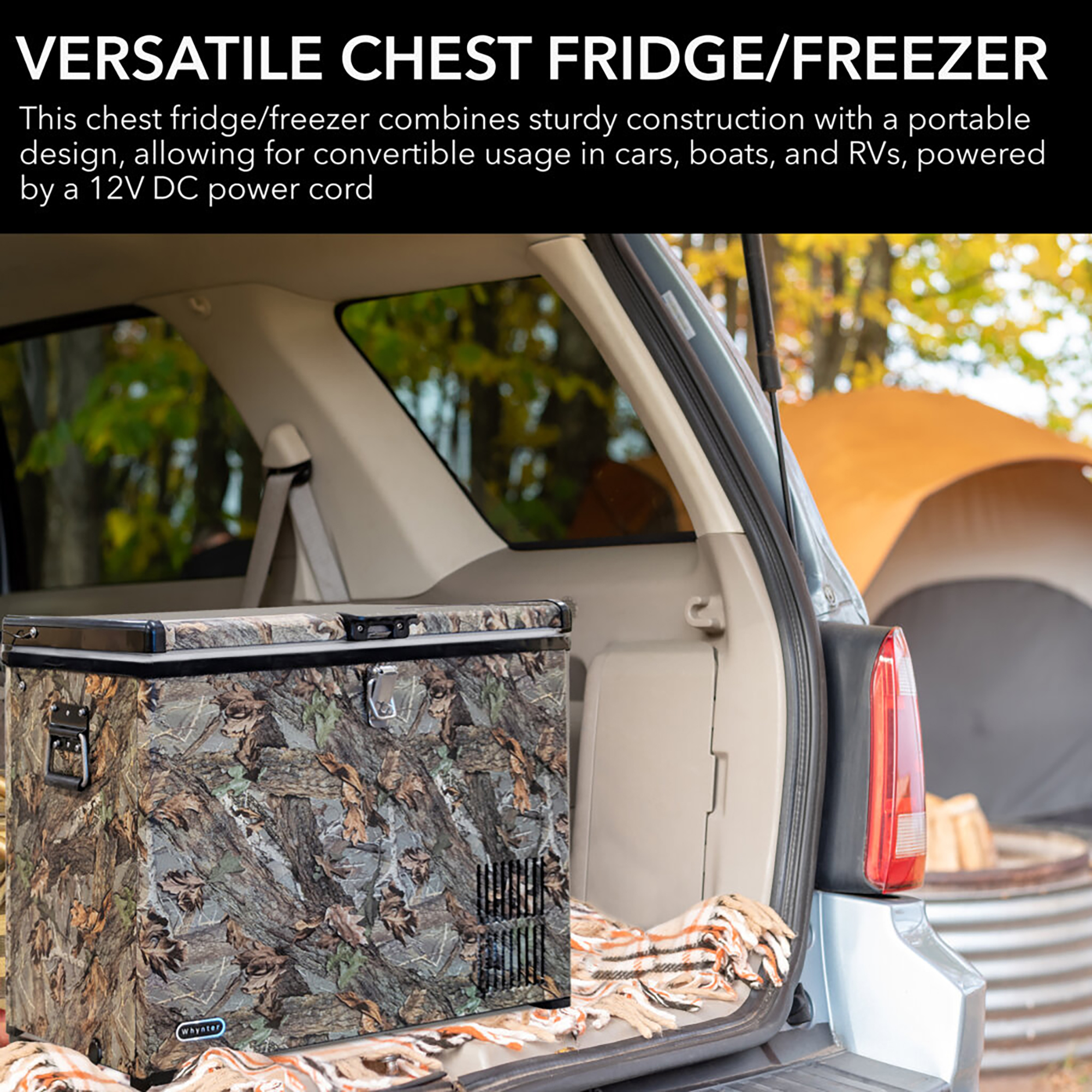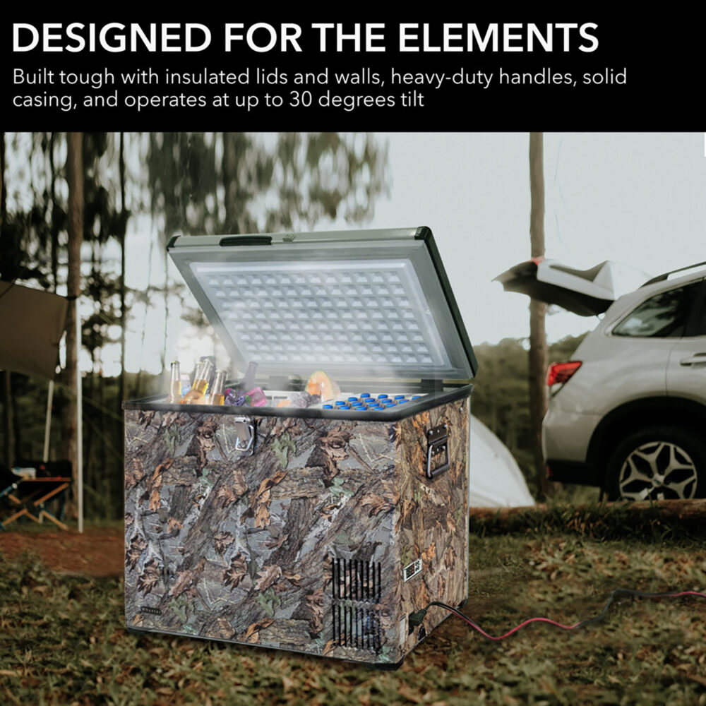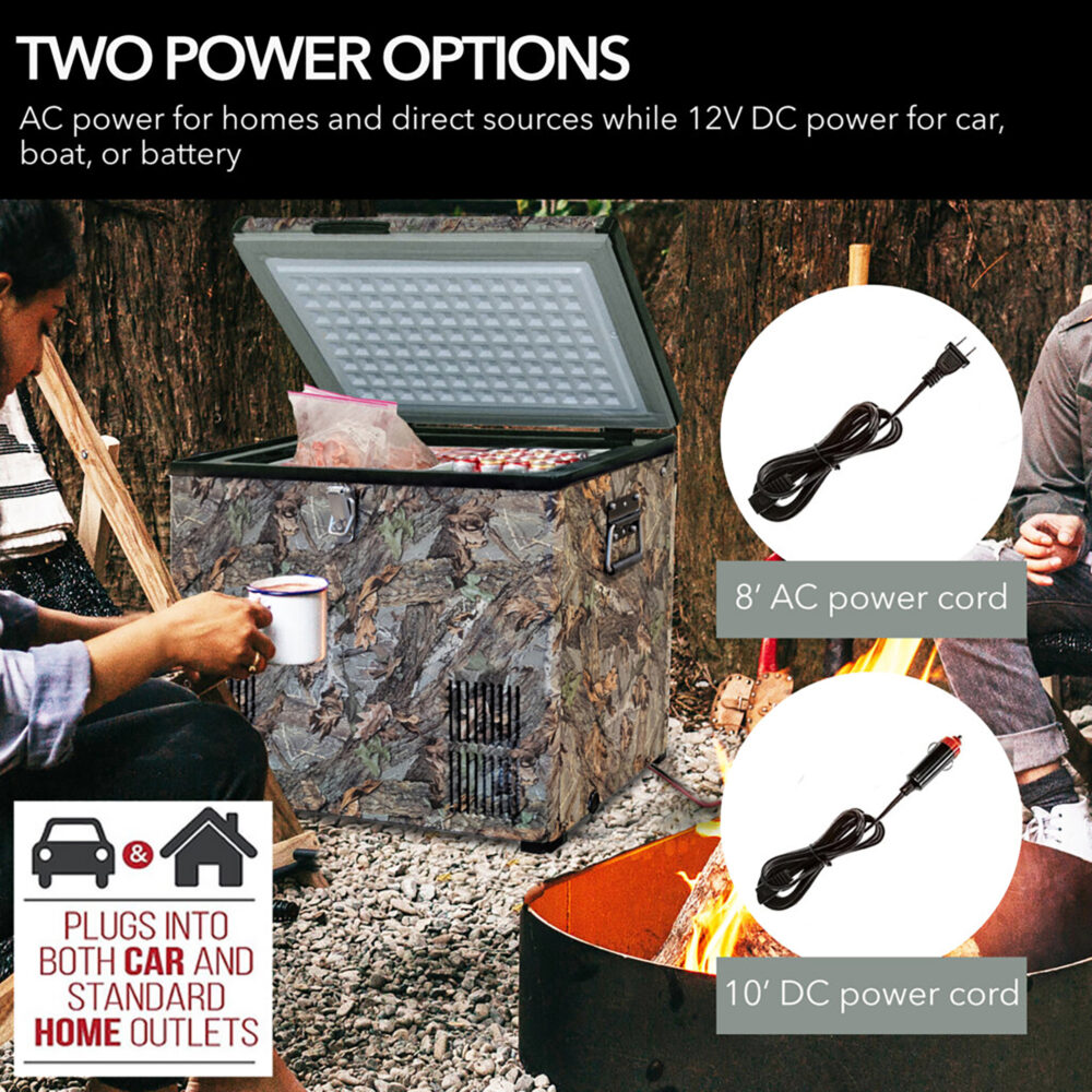 Take your drinks, meats or and other contents on the go with Whynter FM-45CAM 45-quart portable fridge/freezer. This special camouflage edition looks cool as it keeps your items cool (or frozen) in one premium and innovative design. It is perfect for RVs, boats, campsites, and fishing trips.