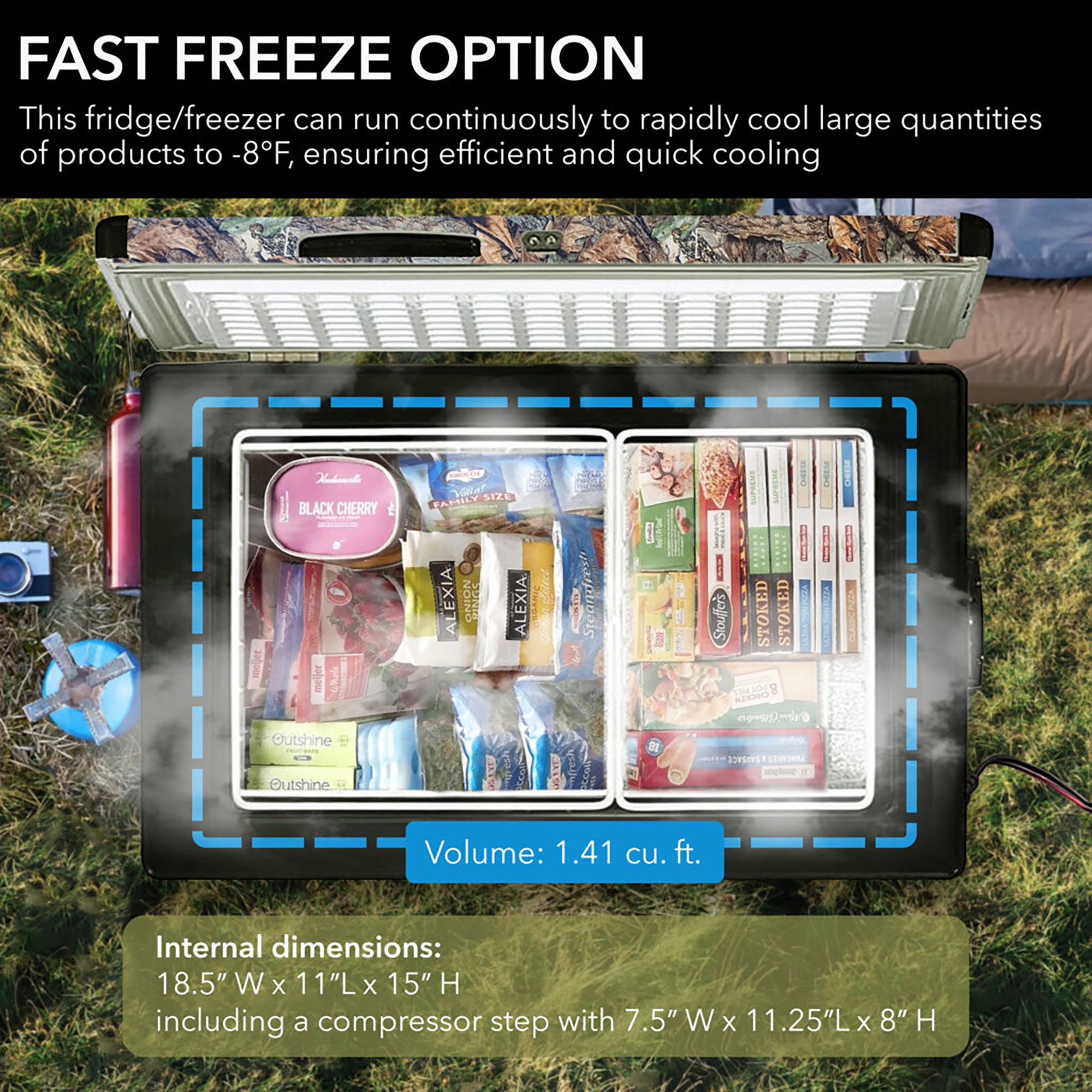 ● “Fast Freeze” mode rapidly cools to -8°F