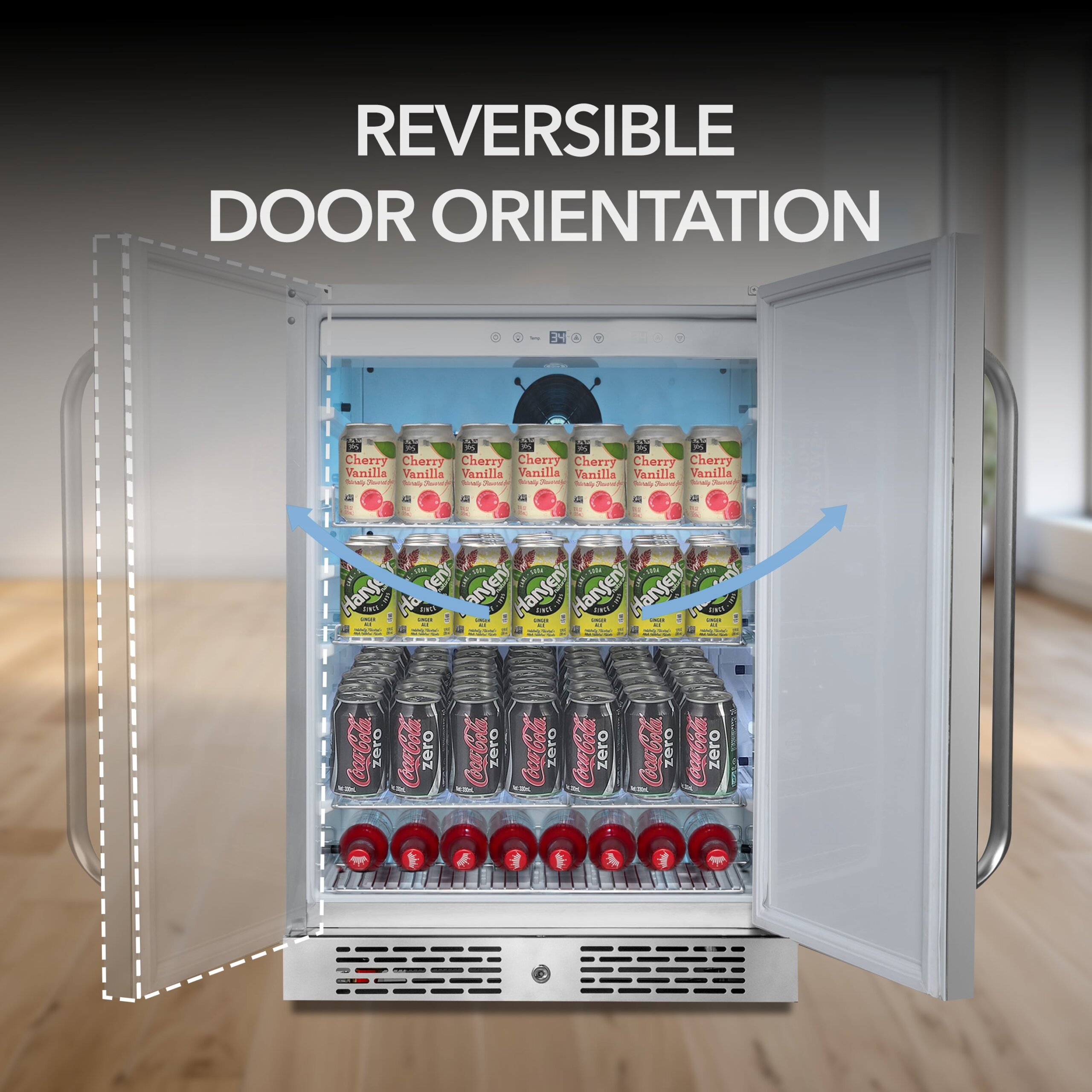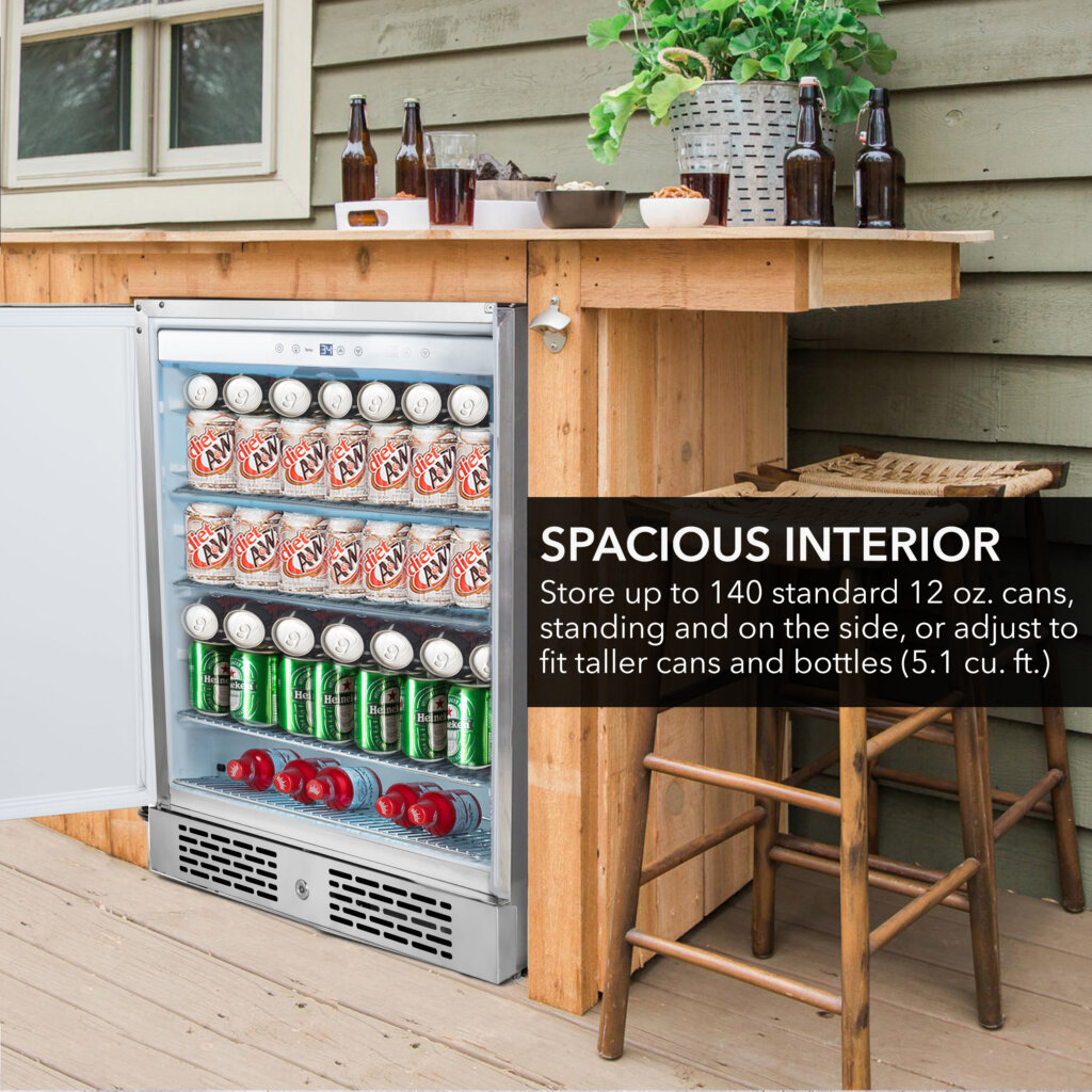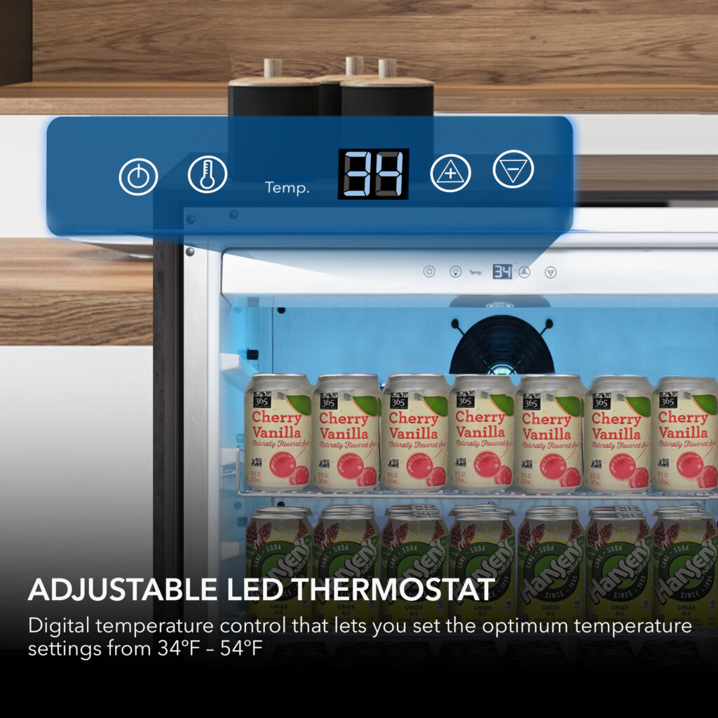 Capacity is based on standard 12 oz cans. Storing larger bottles may reduce the total number of beverages that fit.