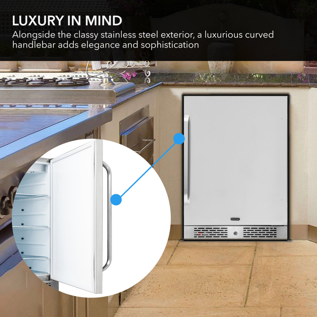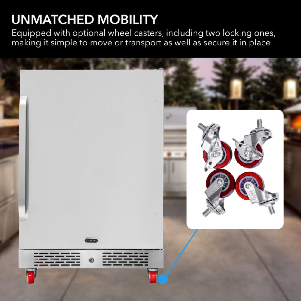 Whynter BOR-53024-SSW/BOR-53024-SSWa 24″ Built-In Energy Star 5.3 cu. ft. Indoor/Outdoor Beverage Refrigerator Cooler Weather Proof in Stainless Steel with Lock and Optional Caster Wheels