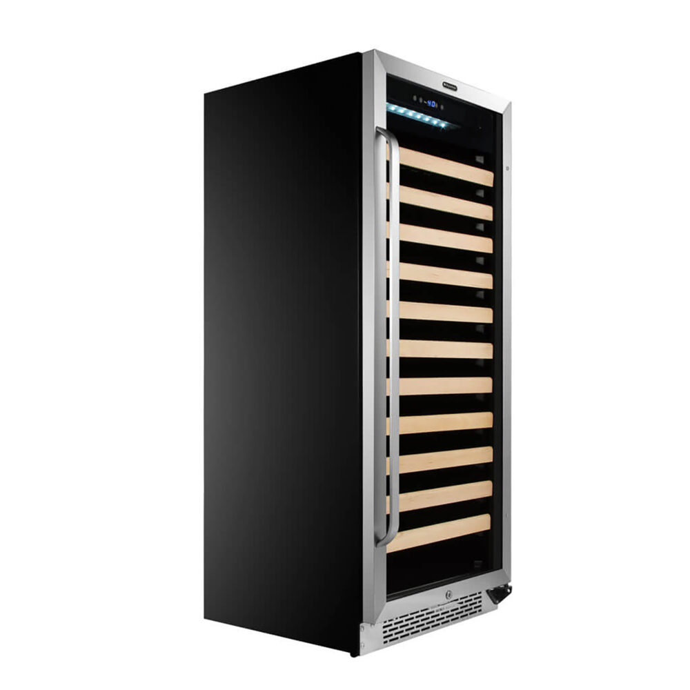 With a powerful compressor and dual zone functionality, Whynter has outfitted this wine fridge with everything you’ll need. This 100-bottle wine fridge has the capacity and the quality to keep your collection safely chilled and attractively displayed. You can show off your collection with ease on this wine fridge with a display shelf.
