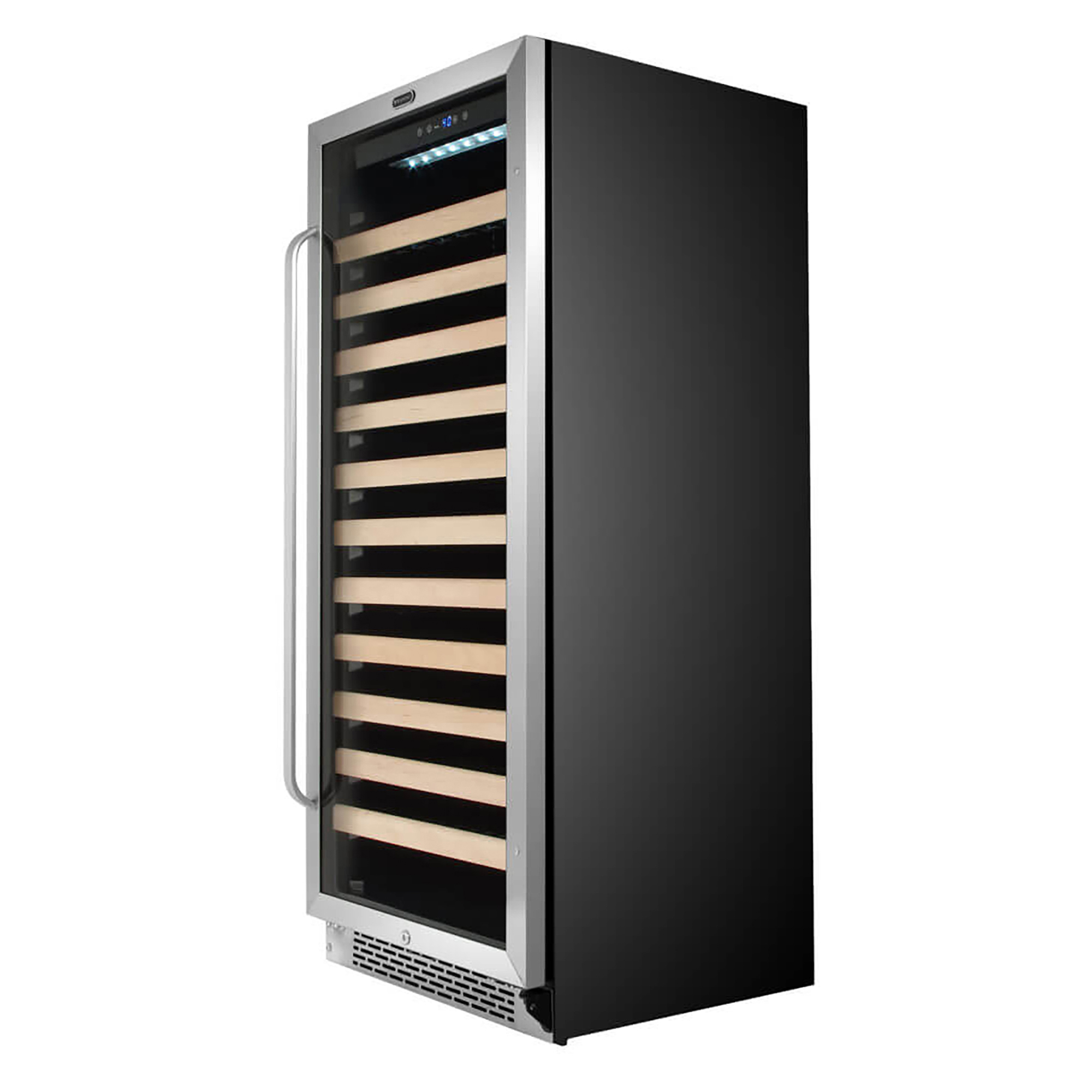 With a powerful compressor and dual zone functionality, Whynter has outfitted this wine fridge with everything you’ll need. This 100-bottle wine fridge has the capacity and the quality to keep your collection safely chilled and attractively displayed. You can show off your collection with ease on this wine fridge with a display shelf.