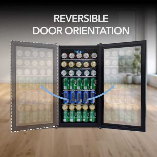 Capacity is based on standard 12 oz cans. Storing larger bottles may reduce the total number of beverages that fit.
