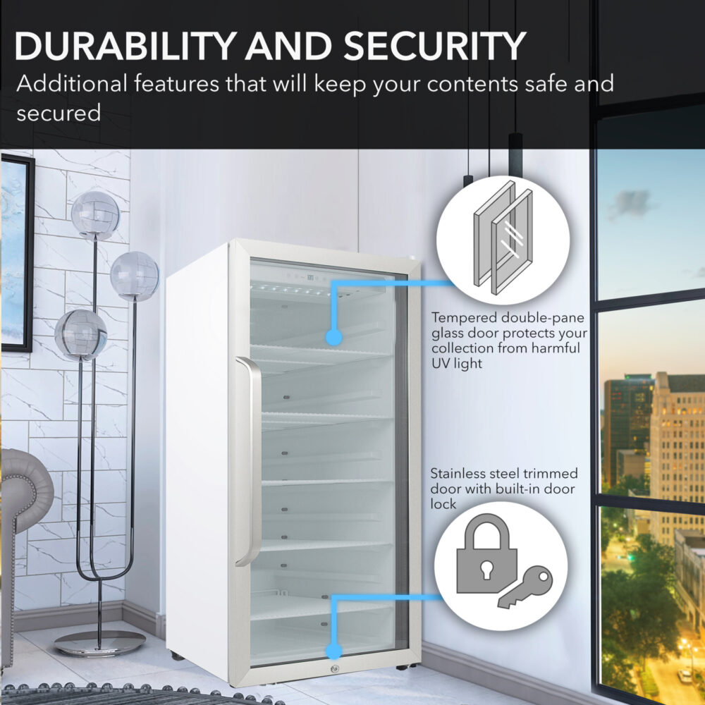 Whynter CBM-815WS/CBM-815WSa Commercial 8.1 cu. ft. Stainless Steel Commercial Beverage Merchandiser Display Refrigerator with Superlit Door and Lock – White