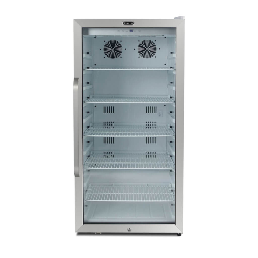 Designed with a classy, clean white exterior, Whynter offers this commercial soda fridge for visible storage and display of beverages. The CBM-815WS Commercial Beverage Merchandiser cooler provides full, easy temperature control with an intuitive touch screen, along with energy-efficient lighting in a design made to be both durable and attractive. The powerful cooling ability makes this fridge a good fit for corporate and home settings.