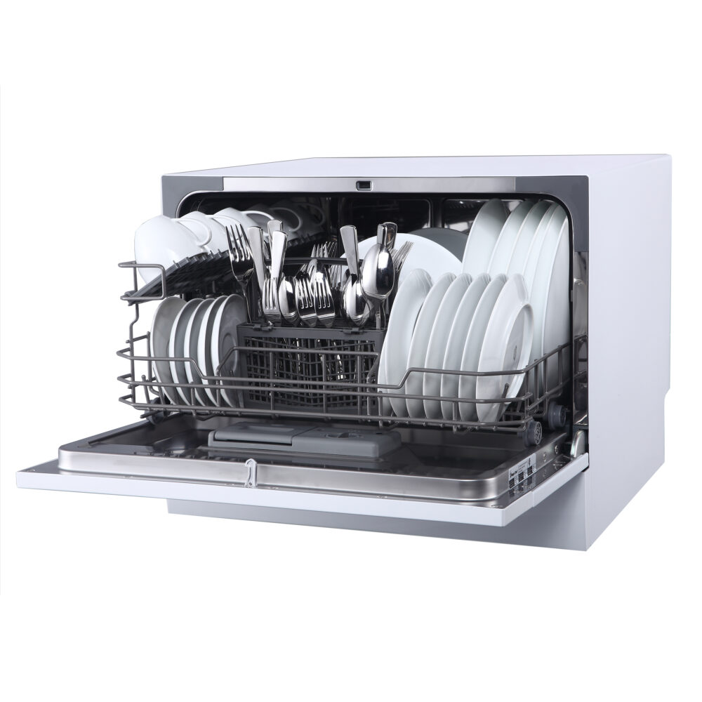 Save time and water with the Whynter Countertop Portable Dishwasher. This countertop portable dishwasher can accommodate up to 6 place settings and is designed to fit on most countertops and under cabinetry.