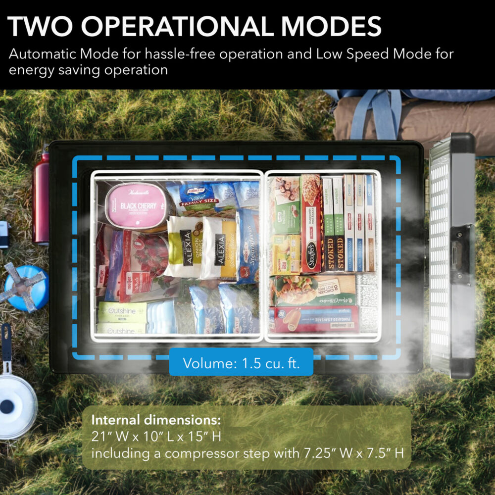 It’s a freezer you can plug in at home (AC power) or run off your vehicle, RV, or boat (DC power). Perfect when you need cold storage on the go or outdoors.