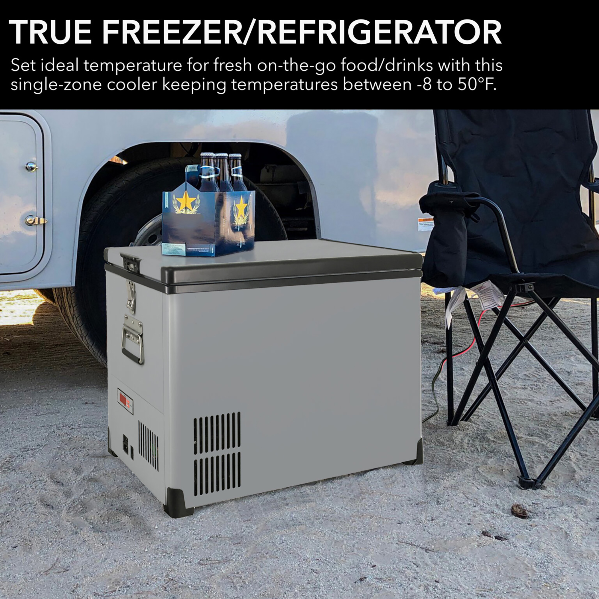 The Whynter FM-452SG should not to be confused with less effective 12 volt novelty and beverage type “coolers”. This portable fridge/freezer is a true refrigerator/freezer which cools between -8°F to 50°F.