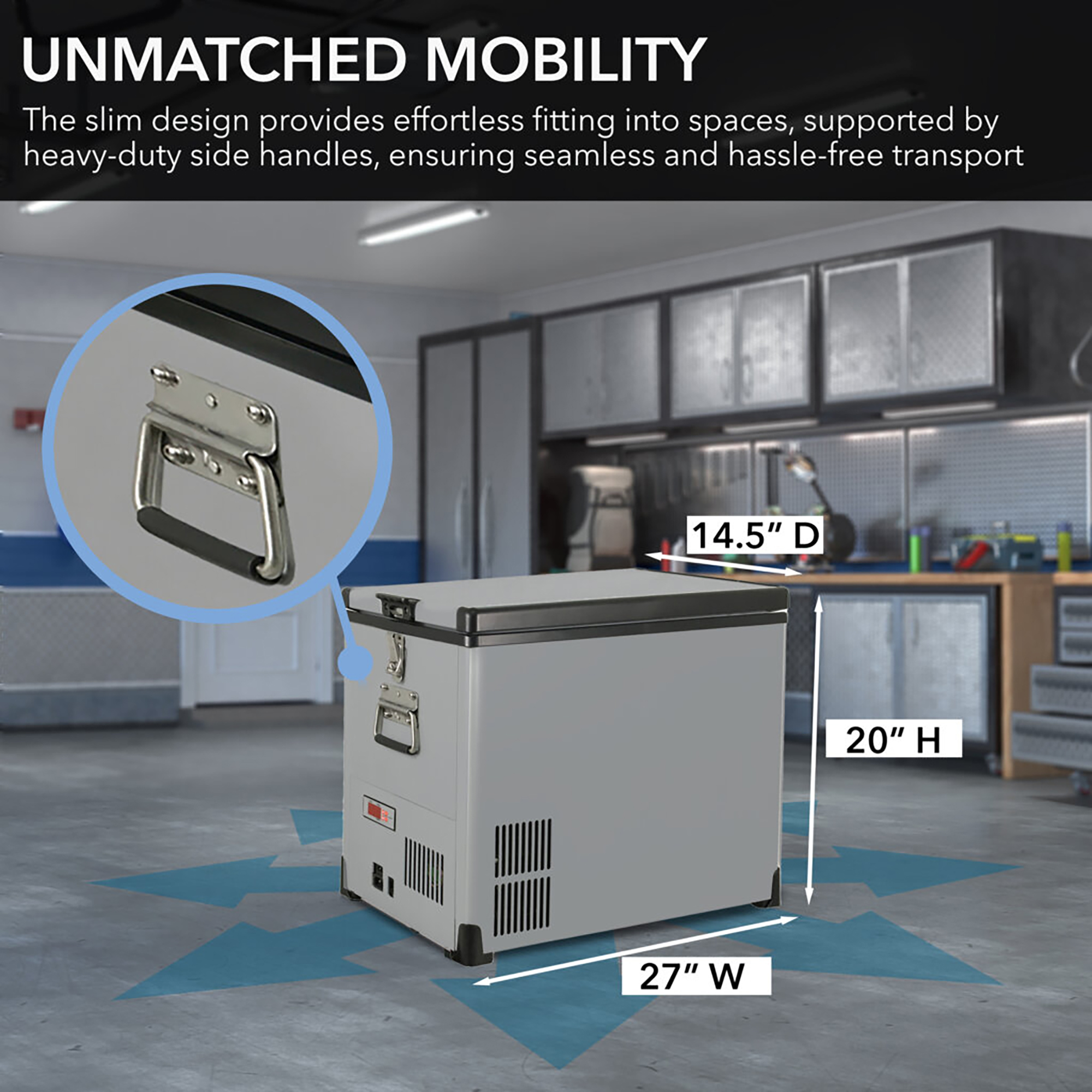 ● Internal dimensions: 21″ W x 10″ L x 15″ H including a compressor step with 7.25″ W x 7.5″ H
