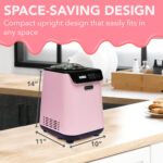 The appealing black and pink coloring will accent any kitchen counter while the soft touch LCD control panel makes for ease of use. This unit also includes an electronic timer, ice cream scoop, and even some secret recipes from us on request!