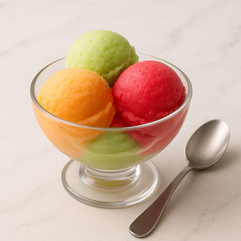 • Sorbet: Fruit-based, dairy-free, light and refreshing
