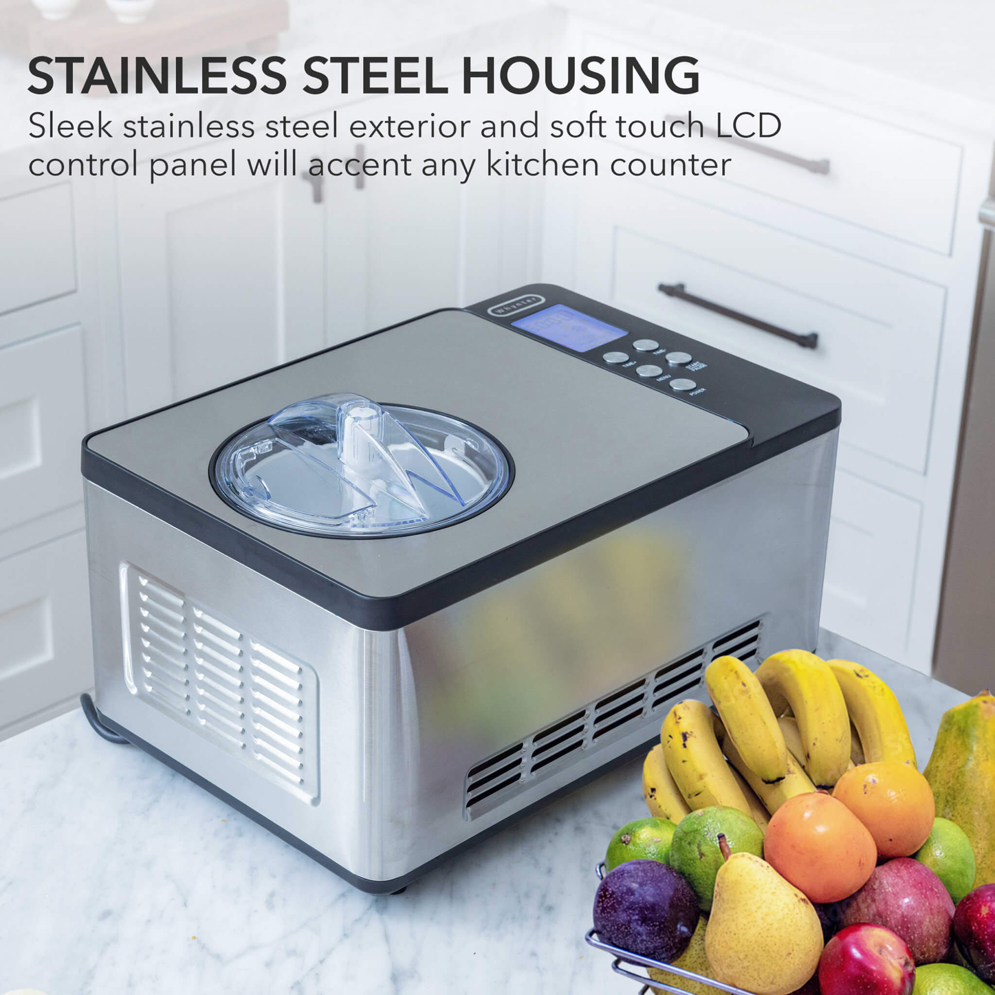 Whynter ICM-220SSY 2 Quart Capacity Automatic Compressor Ice Cream Maker & Yogurt Incubator with Stainless Steel Bowl in Stainless Steel