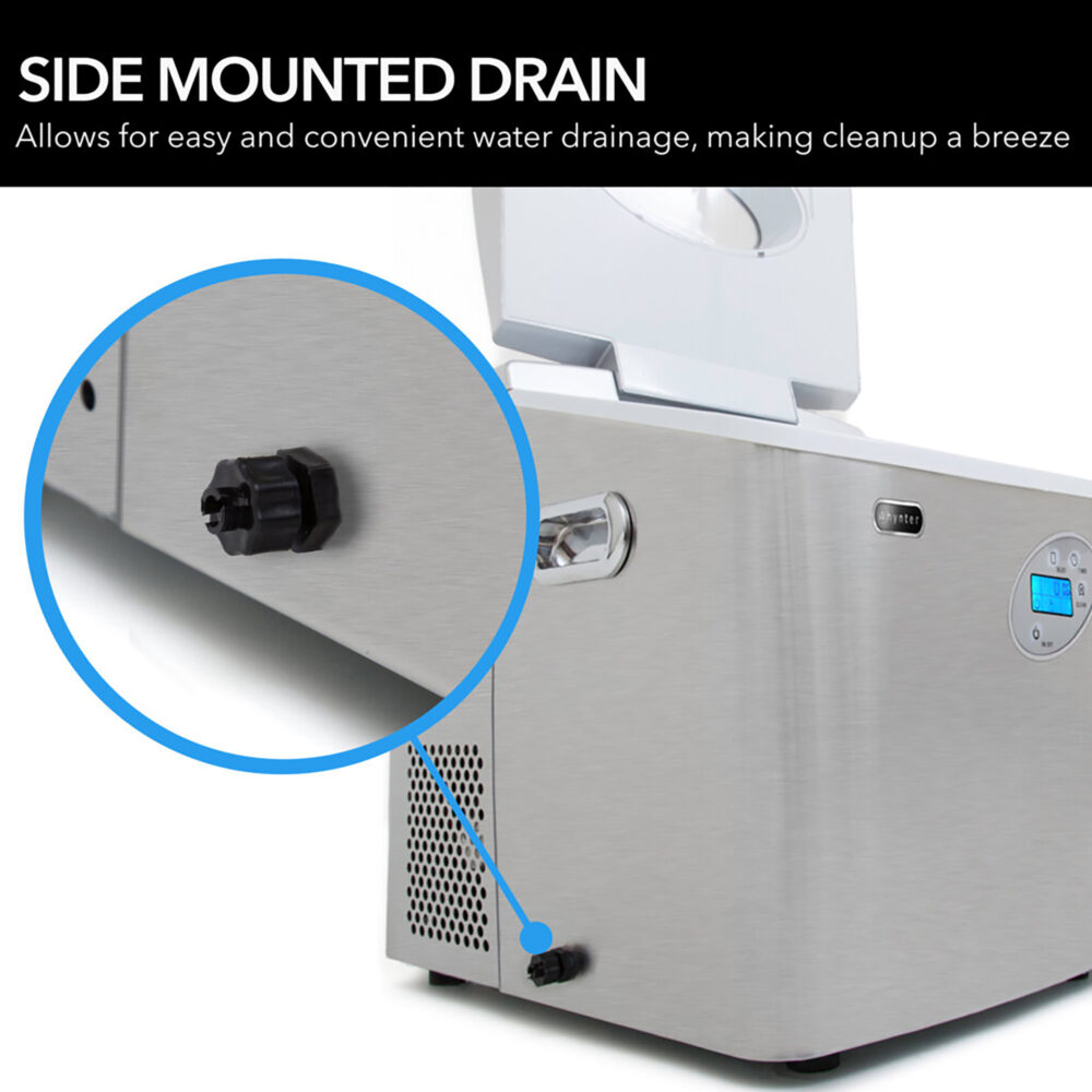 Always looking to make our appliances just a little better, we have added an optional direct water feed function to this ice maker. The direct connection allows you the convenience of having a continuous supply of ice without have to refill the water drawer. Simply connect the unit to a water main using the water hose that is included with the unit and the unit will draw water for ice making as needed. The Whynter IMC-491DC can also be filled manually by simply filling the 5 liter reservoir with water, choose a preferred ice size, and watch your portable ice maker make your first batch in as little as 10 – 15 minutes.