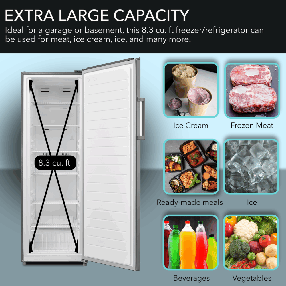 Whynter UDF-0831SS/UDF-0831SSa 8.3 cu.ft. Energy Star Digital Upright Stainless Steel Deep Freezer/Refrigerator