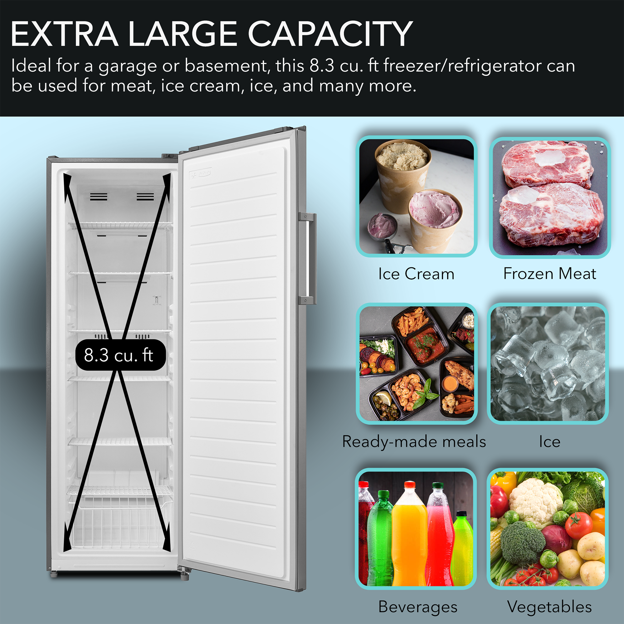 ● Capacity: 8.3 cu. ft.