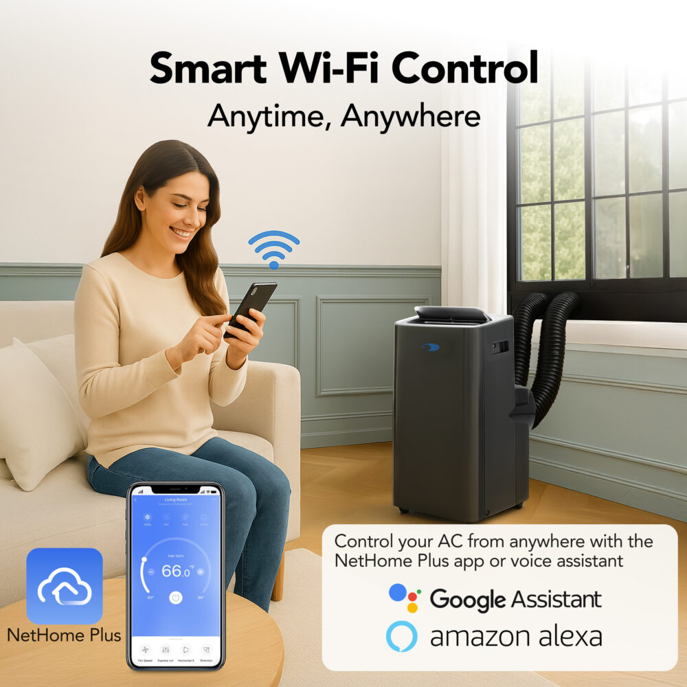 This innovative model ensures optimal performance, while smart Wi-Fi connectivity puts control at your fingertips, whether you’re at home or on the go, thanks to seamless integration with Amazon Alexa, Google Home, or the NetHome Plus app. Advanced features such as a 24-hour timer, sleep mode, auto-restart, and a filter check reminder further enhance convenience, ensuring effortless operation tailored to your lifestyle. With its sleek white design and whisper-quiet operation, the Whynter ARC-1280MX effortlessly complements any home decor while delivering unparalleled comfort.
