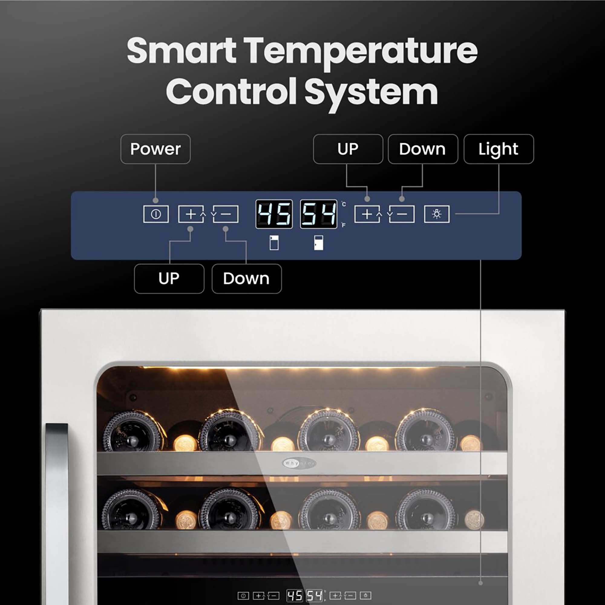 Independent dual-zone temperature adjustment (40-65 °F) with ±1 °F accuracy.