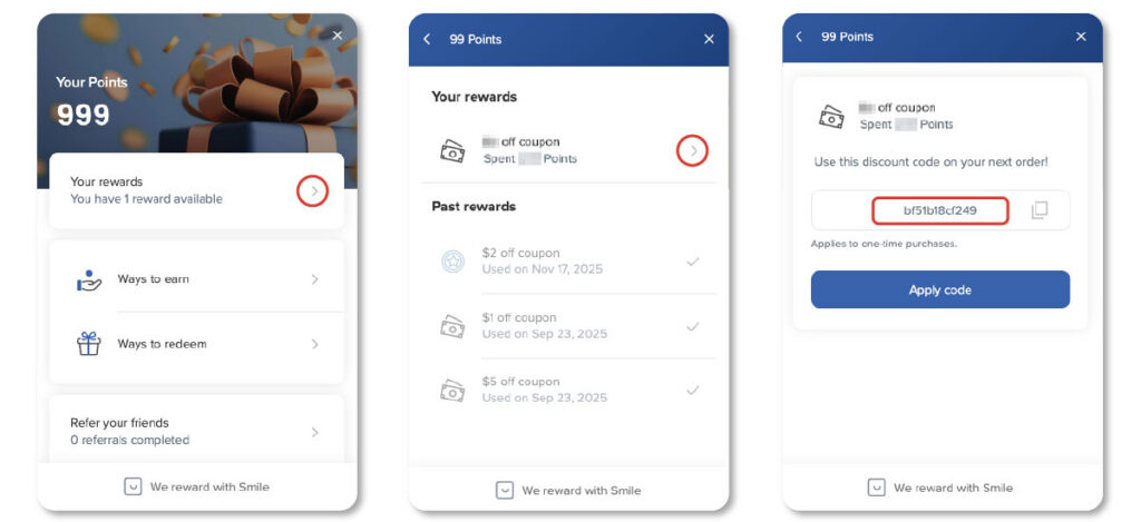 On the Whynter Rewards Launcher, select “Ways to redeem,” generate a code based on your point earnings, and apply it at checkout.